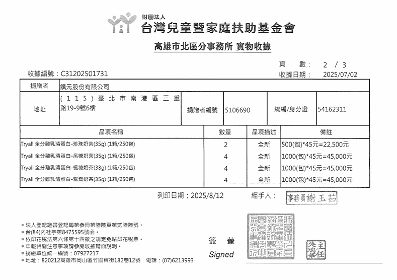 家扶基金會指出,此次受助的兒童中,許多正處於快速發育階段,蛋白質需求量大;另有一部分孩子是潛力運動小將,需額外營養支持以維持訓練表現。然而,經濟弱勢家庭往往難以負擔高品質的營養補充品,因此 Tryall 希望提供補給品,幫助孩子們能無後顧之憂地追求學業與運動夢想。