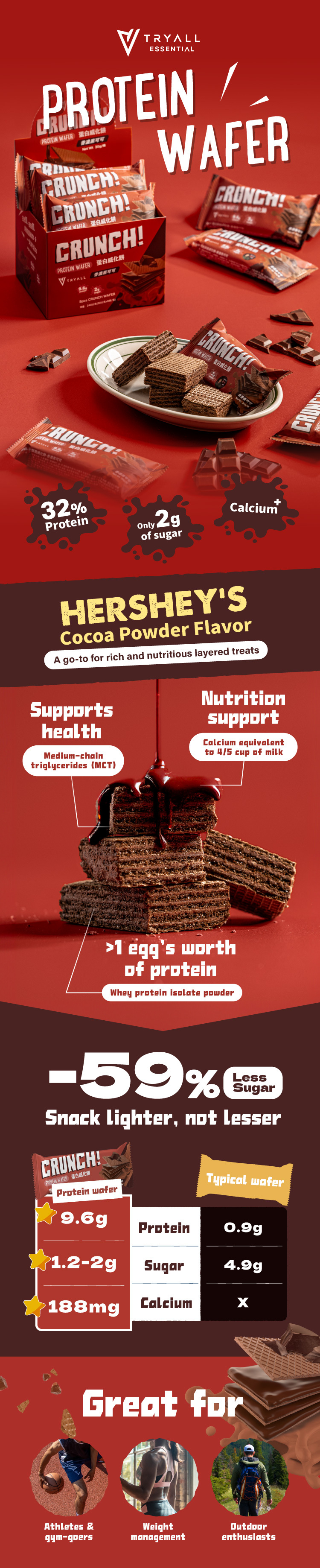 2. Layered crispy texture with a deep, rich dark cocoa taste.