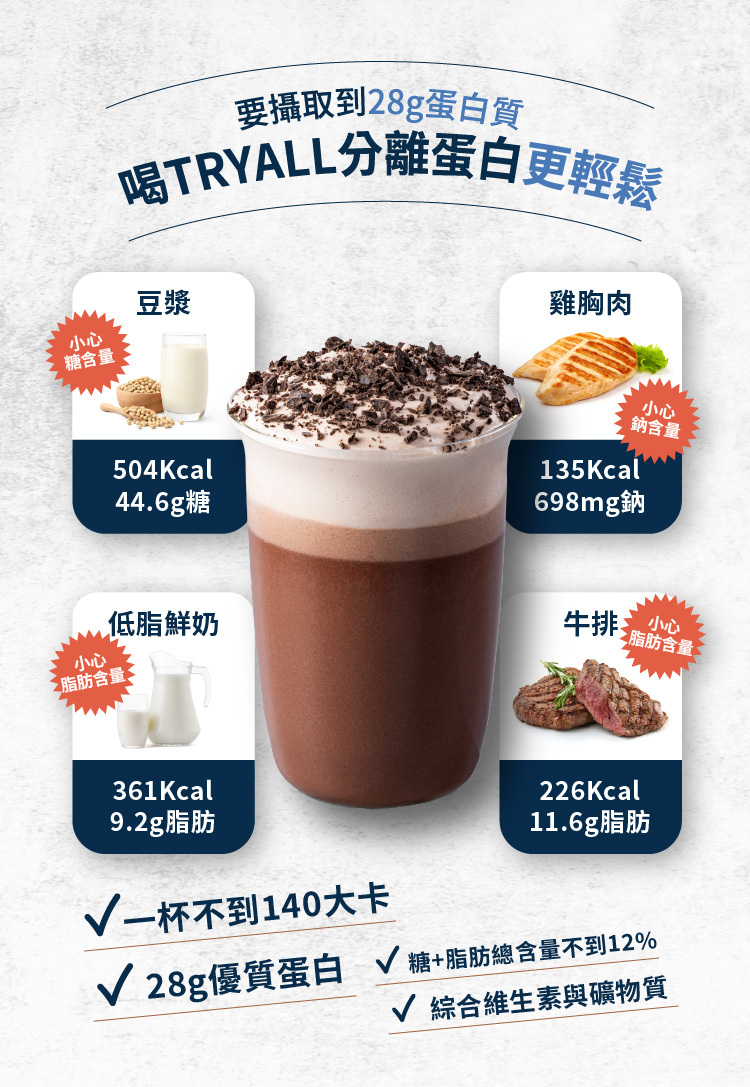 1. 使用全分離乳清製成,濾除大部分乳糖&脂肪
