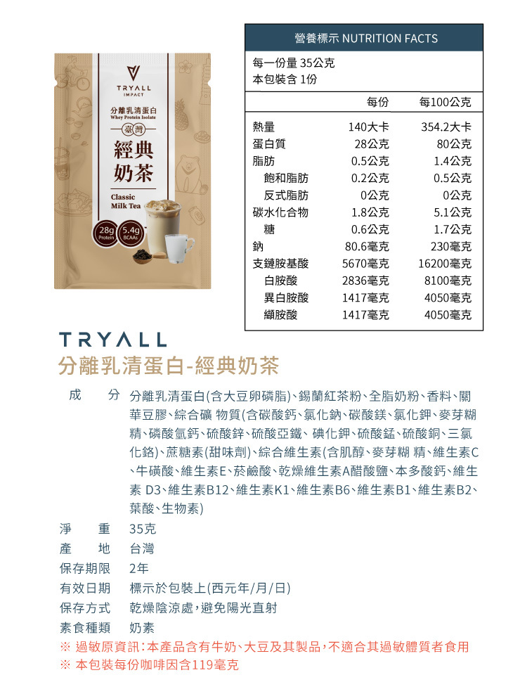 1. 使用全分離乳清製成,濾除大部分乳糖&脂肪