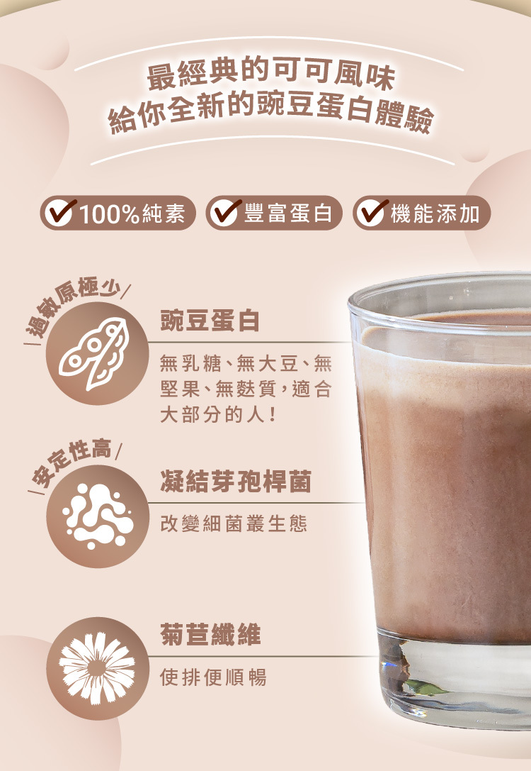 1. 100%植物蛋白,添加機能配方營養價值更完美!