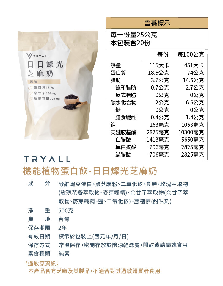Tryall | 機能豌豆蛋白-芝麻奶 (500g)