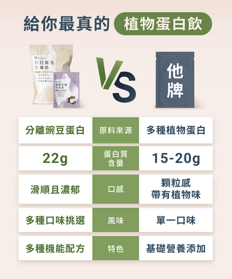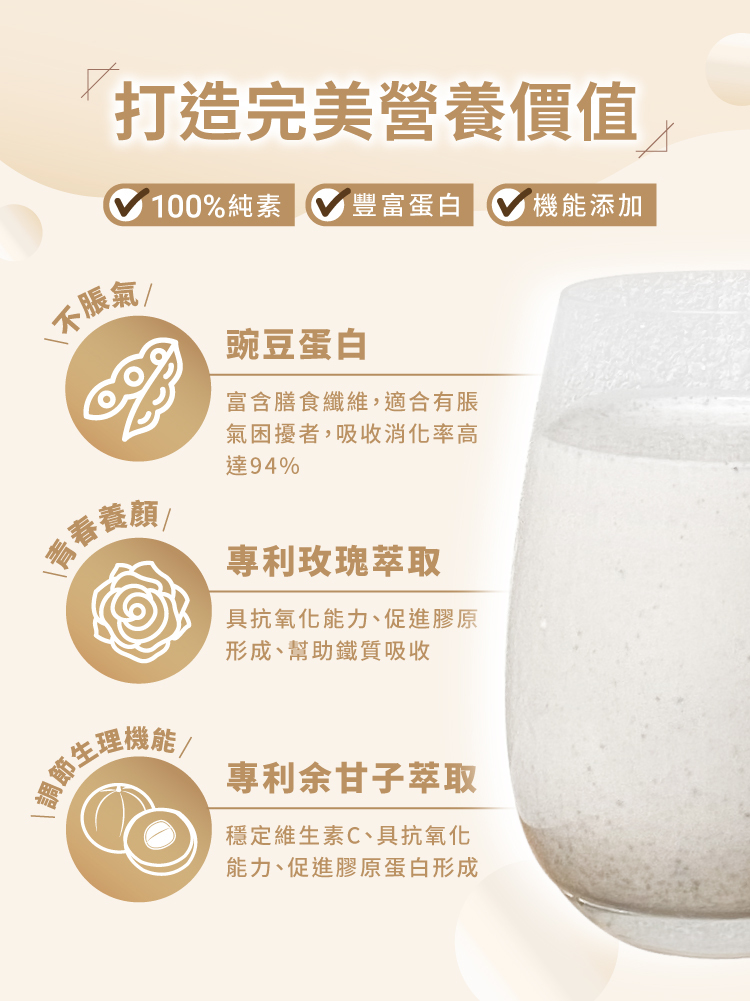 1. 100%植物蛋白,添加機能配方營養價值更完美!