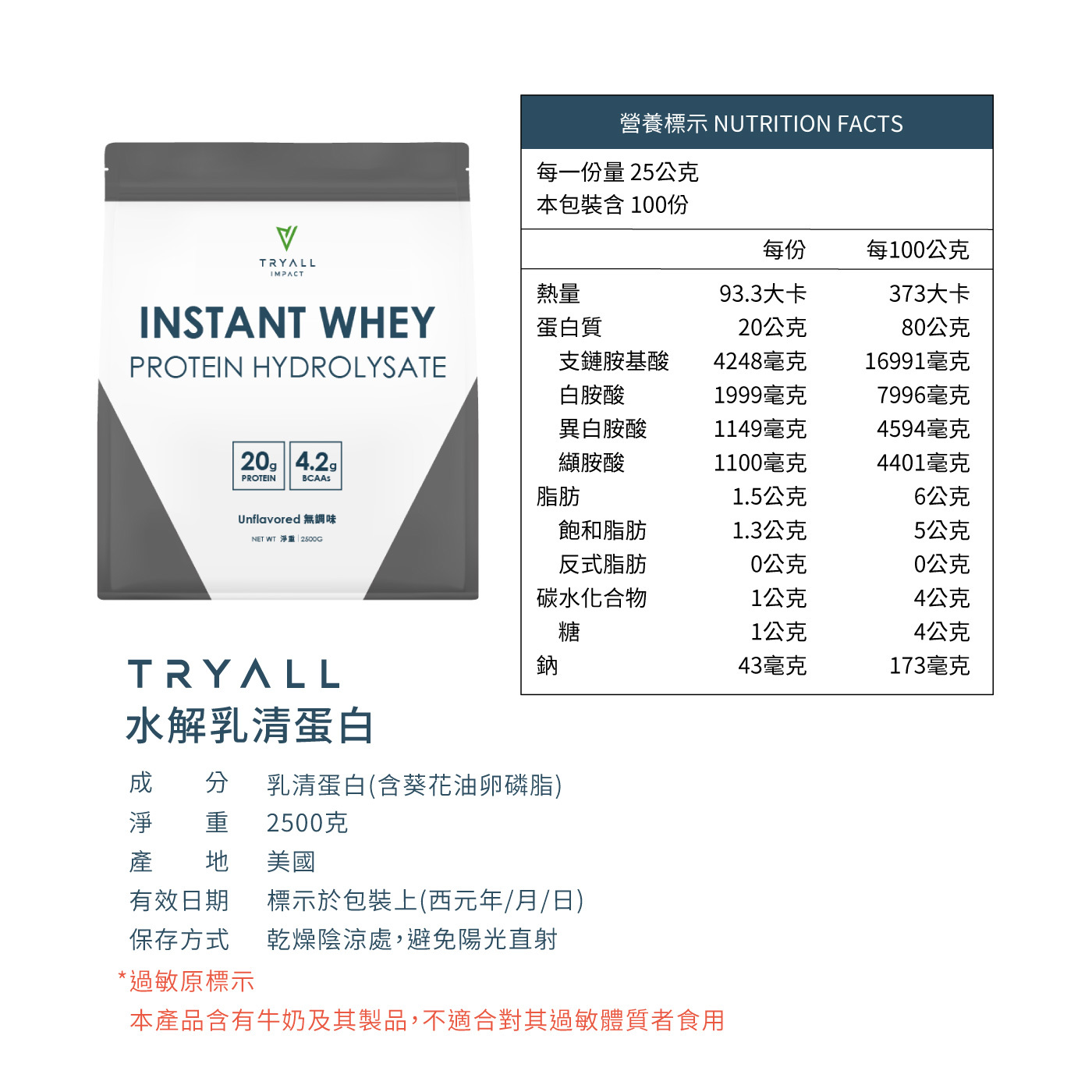 Tryall | 水解乳清蛋白(無調味) 2.5公斤
