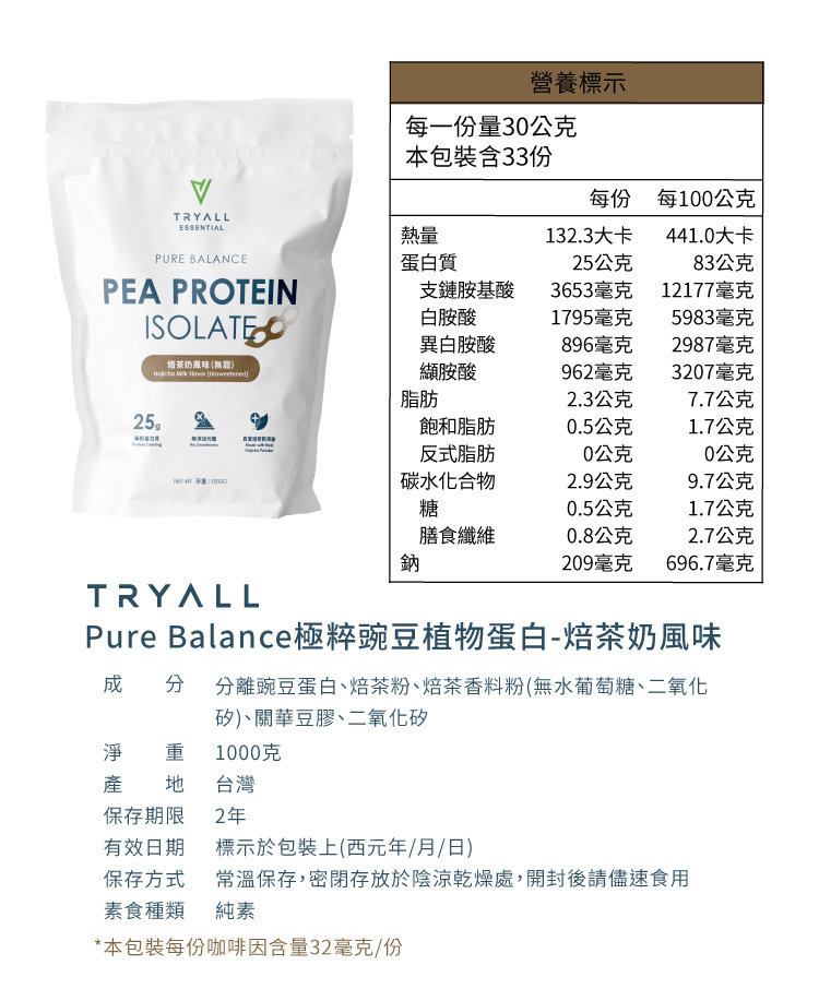 Tryall | Pure Balance 極粹豌豆植物蛋白-焙茶奶 1公斤