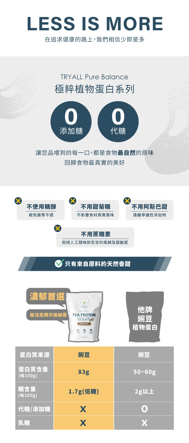 1. 100% 無代糖 x 無糖 x 不甜